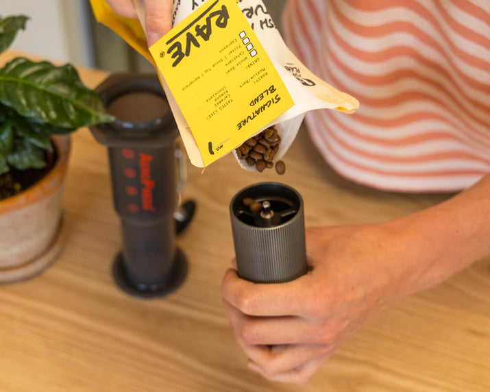 We recommend buying your coffee beans and grinding what you need, when you need it.