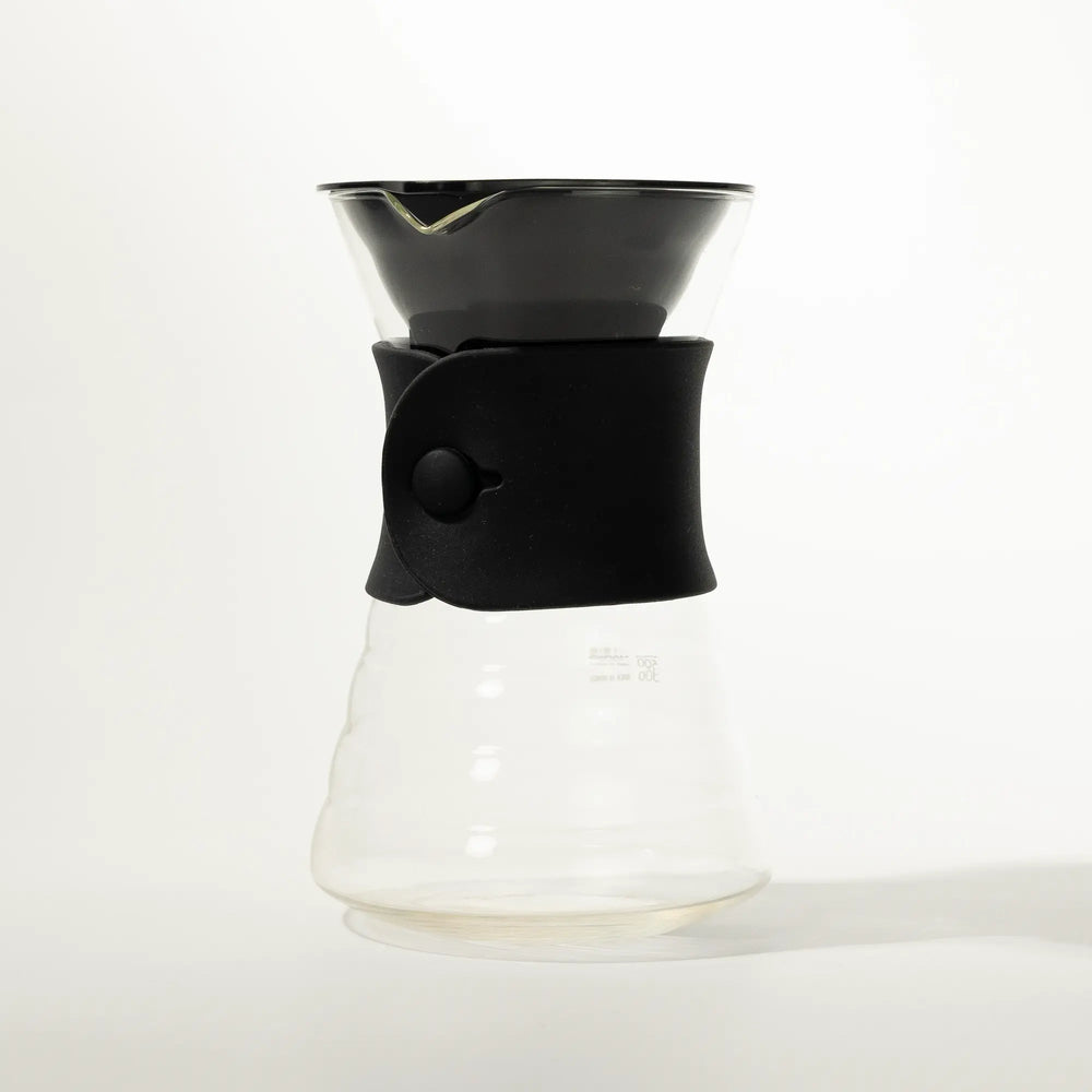 This great product allows you to brew coffee directly into the serving vessel in dripping style. It is easy to use and also compatible with 02 V60 dripper. Grind the coffee beans, brew, then remove the V60 top after bring the decanter out to serve. The Hario V60 drip decanter comes with a plastic free-standing dripper filter with spiral ribs. It also includes a washable, heat-resistant rubber band made of silicone for extra grip and heat protection.