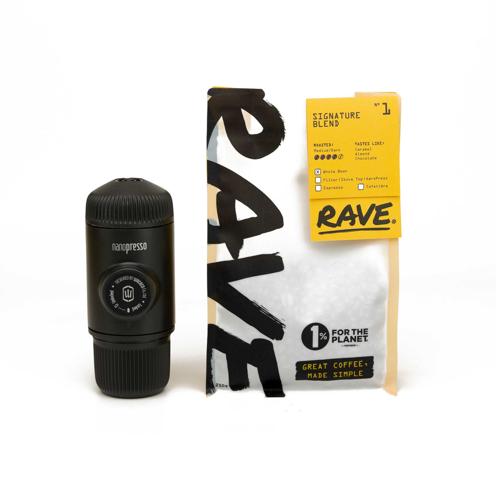 Discover how to make the perfect espresso shot on the go with the Wacaco Nanopresso and a bag of freshly roasted Rave Coffee.